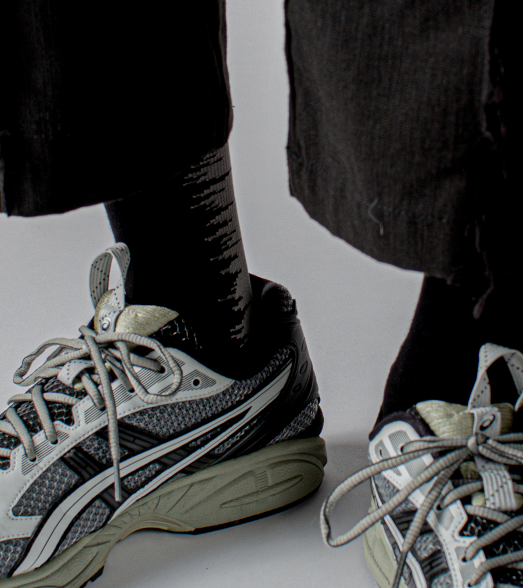 nozzle quiz將襪款設定以理性的原始狀態呈現,詮釋赤裸的思維狀態,因而採用有機棉材質施作,並加入機能Skinlife® 及 Lycra® 的紗線製作,具備合適秋冬季度的豐厚棉料手感與科技纖維的抗菌及舒適包覆感,帶來兩款低調的灰暗色系襪履,推出黑、灰兩色選擇。